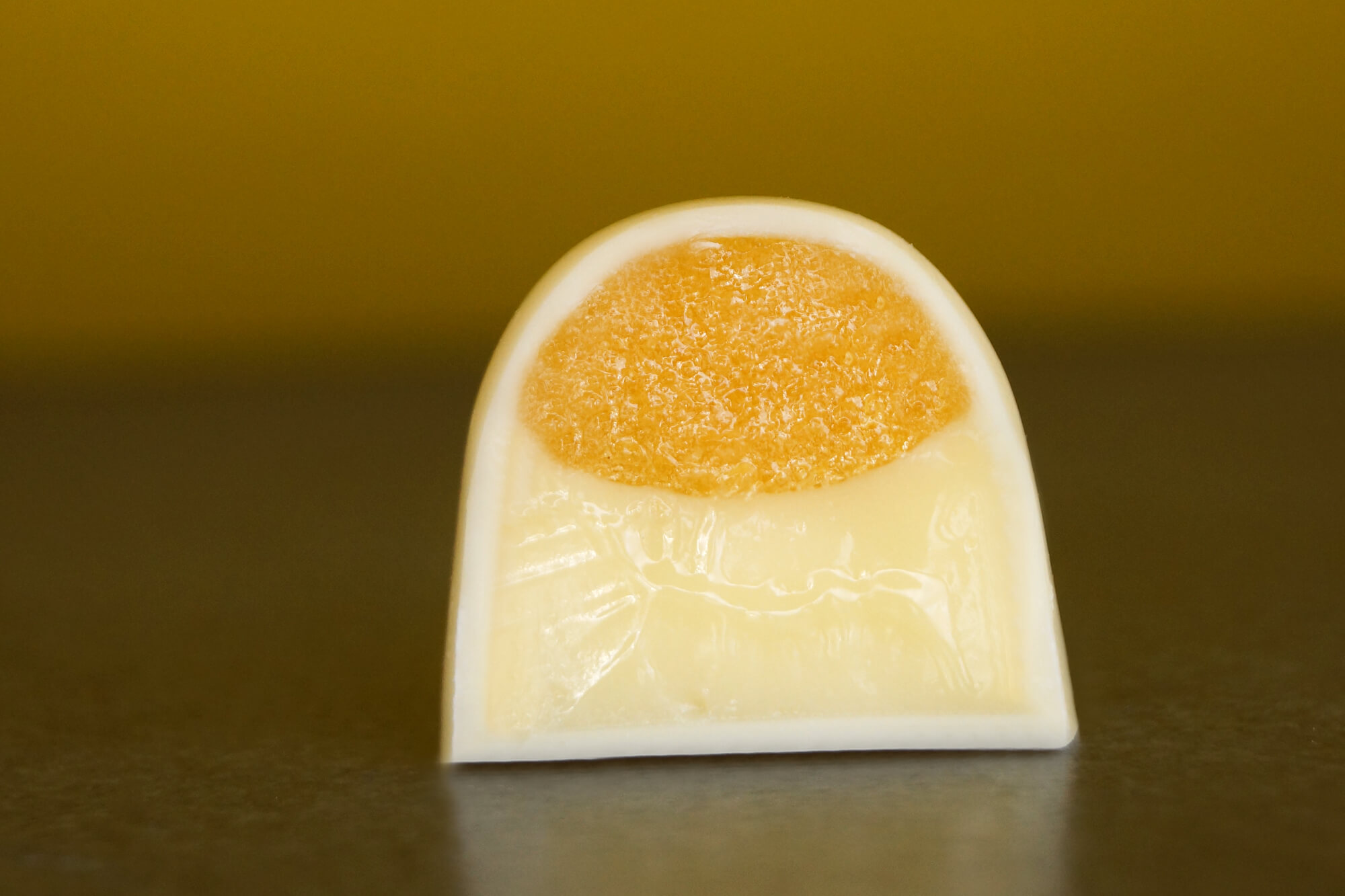 White wine pate de fruit with spices, White Wine & Orange ganache ( plus alcohol-free version with grape juice)