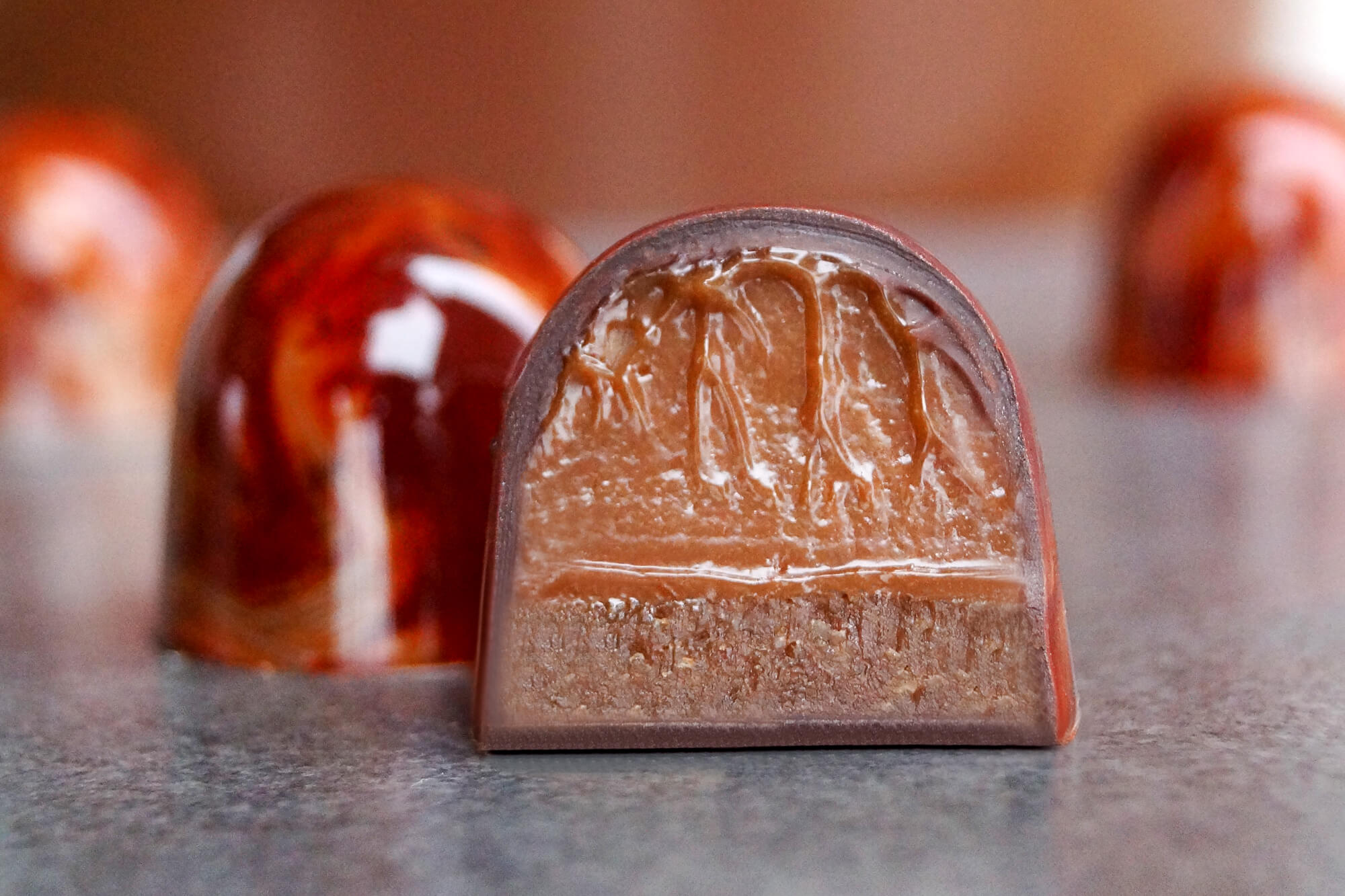 Soft caramel with 2 main tastes - Pear & Cognac with a dash of Cinnamon.
