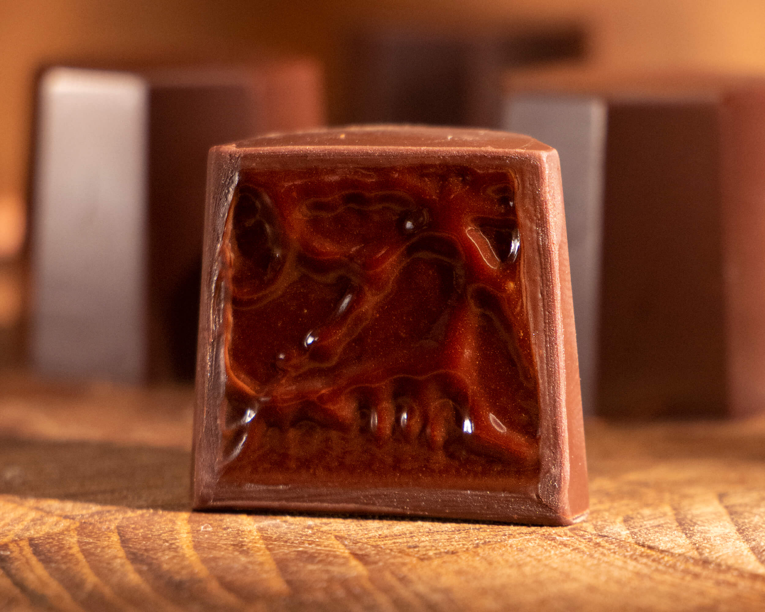 This recipe features a dark chocolate ganache with a generous amount of honey. It opens with the deep, rich taste of dark chocolate leaving a pleasant honey aftertaste.