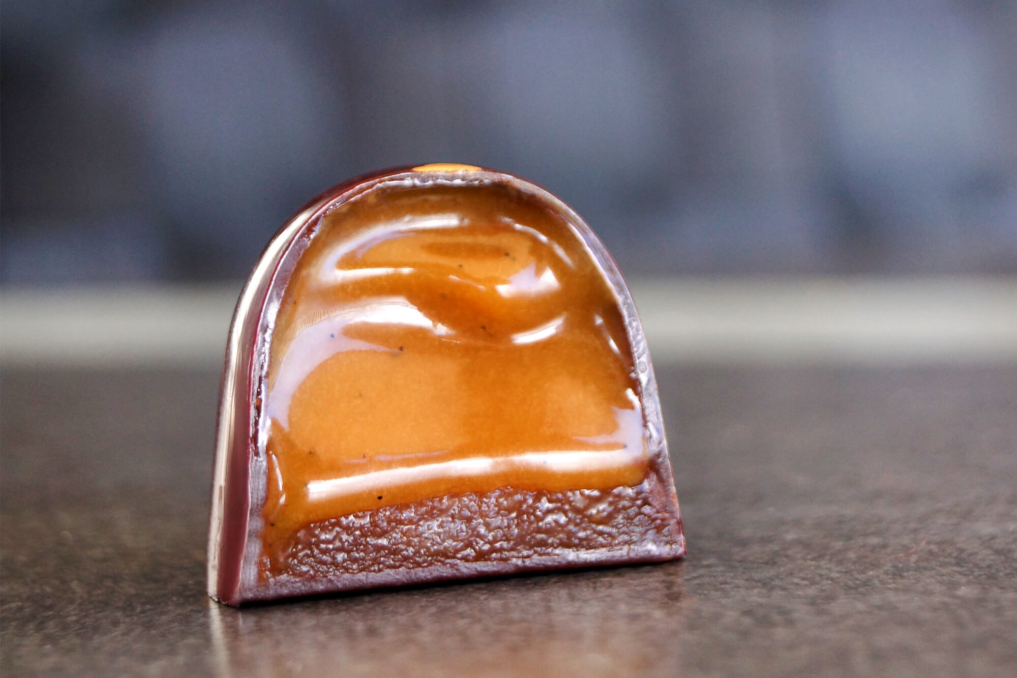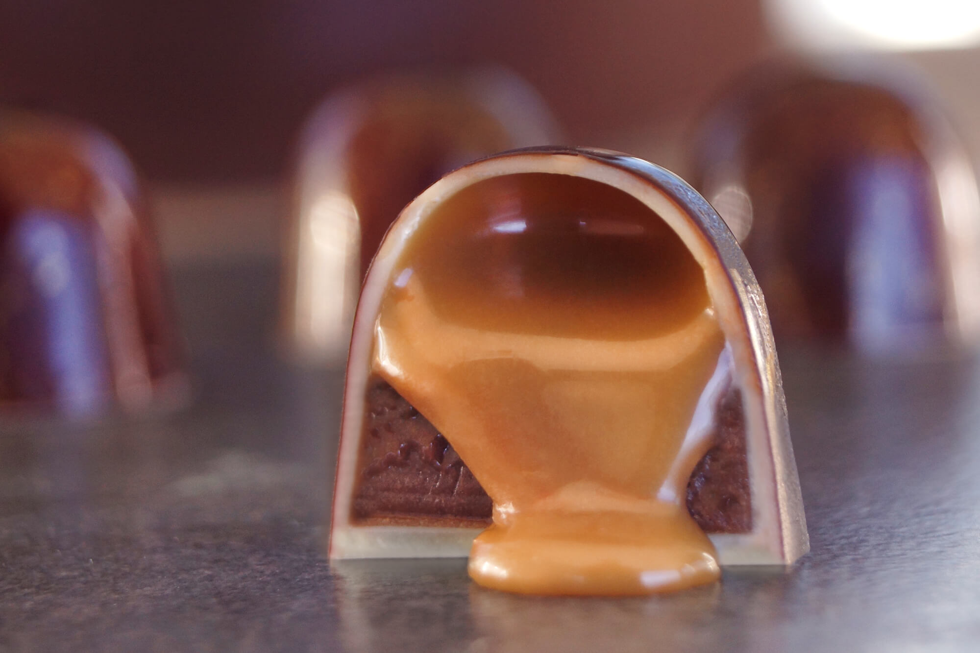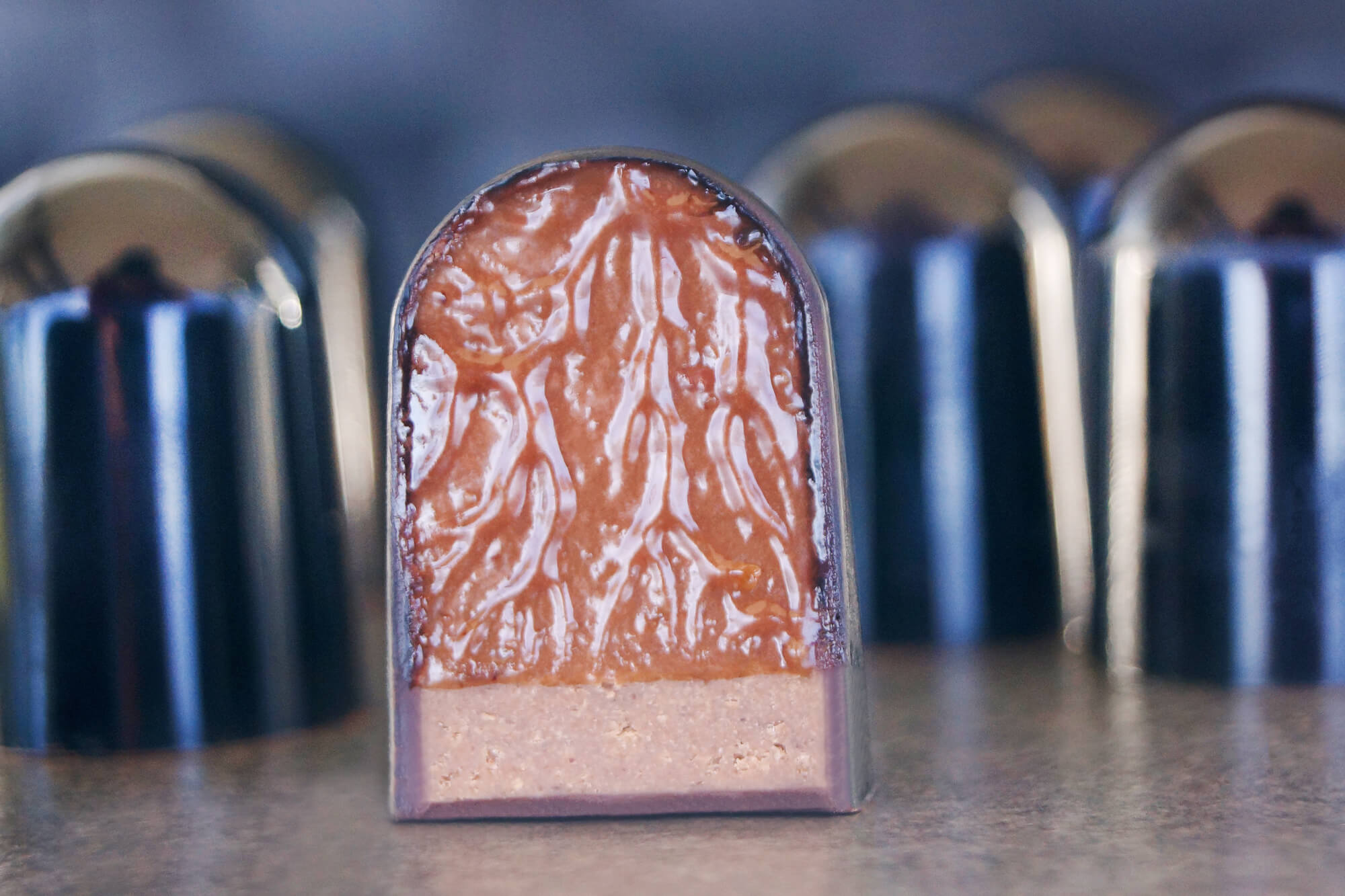 ✅ Soft caramel & ganache with nuts and liquor.