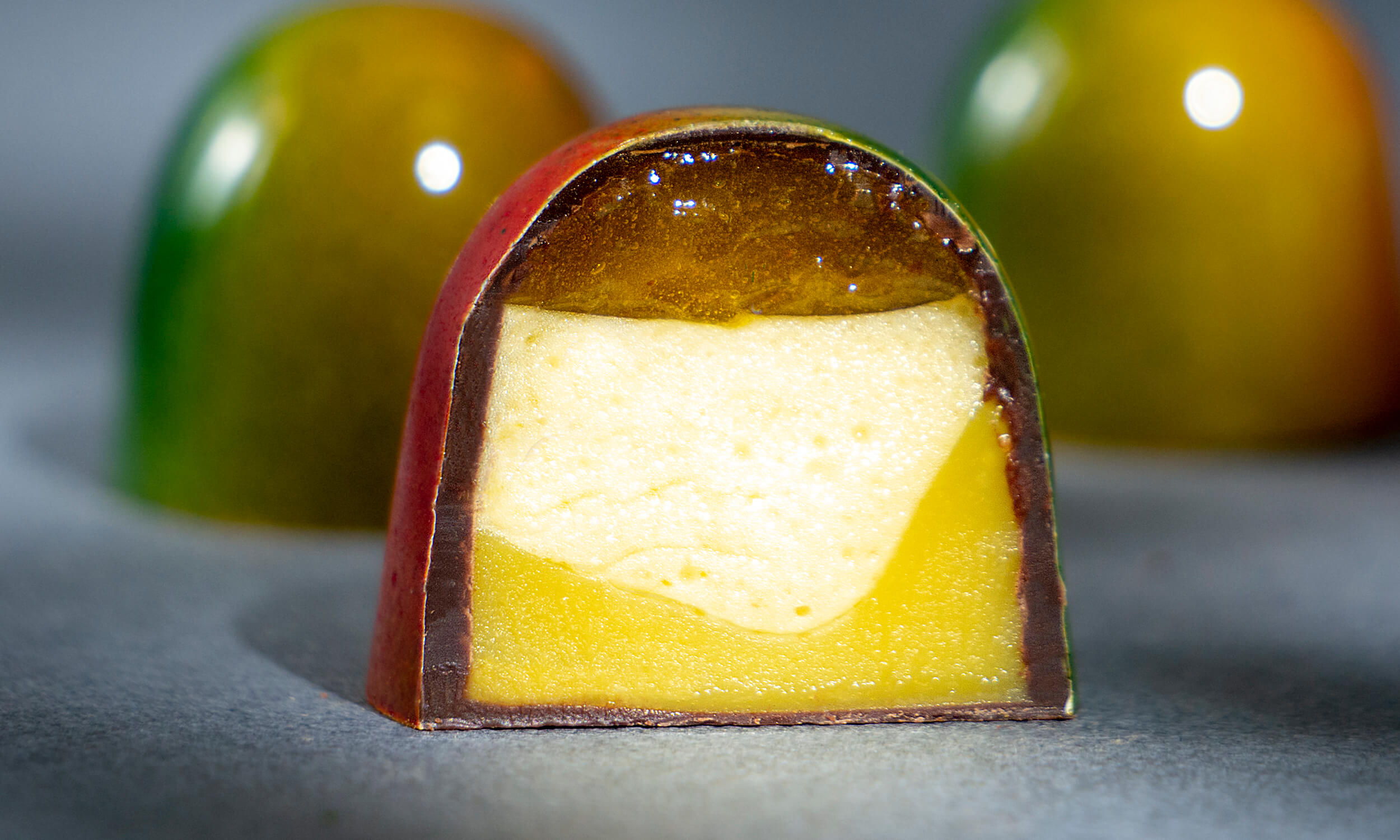 ✅ We will fill 5 bonbons with 3 layers of fillings in each, each layer offering a different recipe and highlighting the main fruit flavor in different ways.